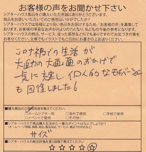 コロナ禍での生活が大迫力の大画面のおかげで一気に充実し、個人的なモチベーションも回復しました!