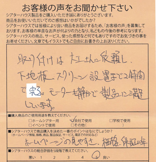 シアターハウスさんを選んで良かったと思います。