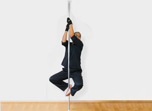クイックポールを使用することで簡単に移動、設置することが出来ます。天井と床を突っ張ぱるタイプのため壁や天井にネジなどで固定する必要がなく、建物に傷が付きません。 対応天井高さは200cm~318cmで使用可能です。