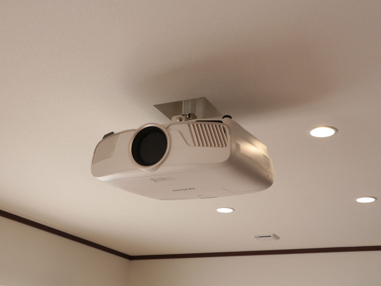 リビングのテレビ前に降りてくるようにスクリーンが設置されていま...